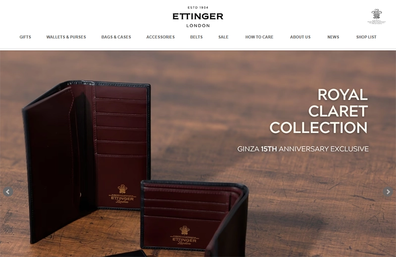 1934年にイギリス・ロンドンで創業されたエッティンガーは、1996年に英国王室御用達(ロイヤルワラント)の称号を授かった格式高いレザーブランドです。