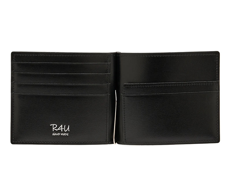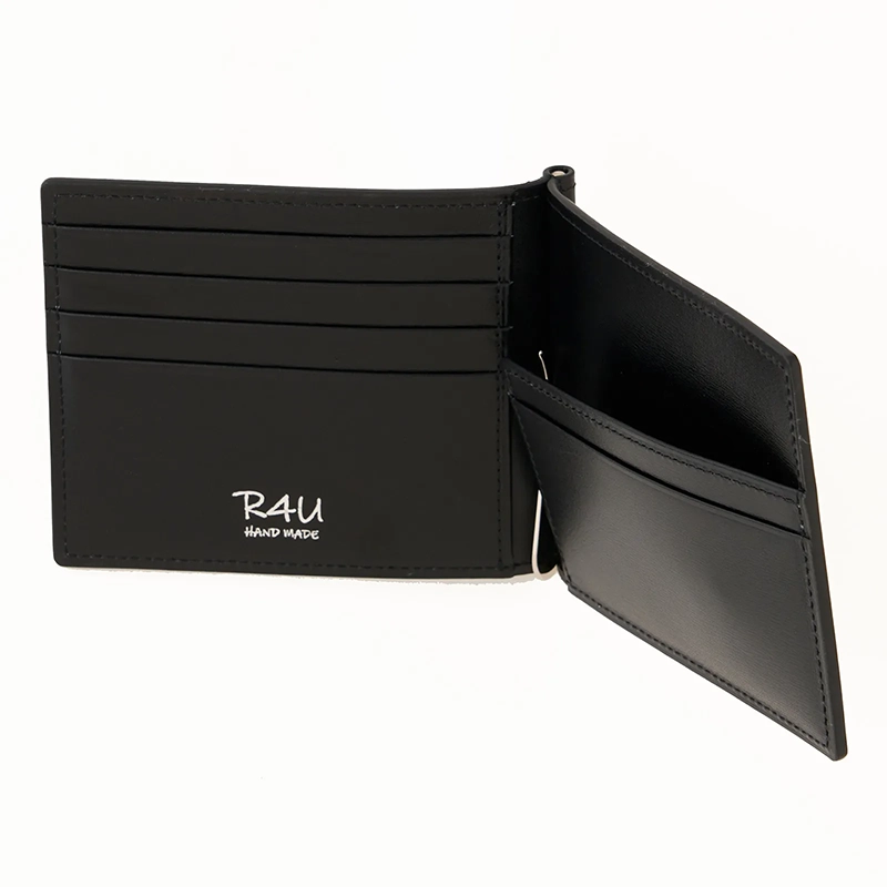 R4Uのマネークリップは、財布に近い使い心地を持つ二つ折りタイプ(札ばさみ式)で、現代のキャッシュレス化を意識した、実用的かつスマートなアイテムです。
