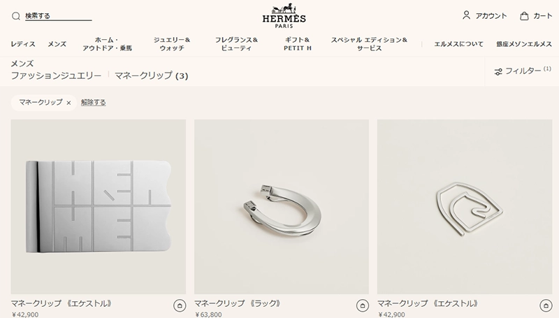 スターリングシルバーを用いた馬蹄やエケストルのモチーフが、ブランドの歴史を感じさせ、お札を挟む道具を「芸術的な工芸品」へと昇華させています。