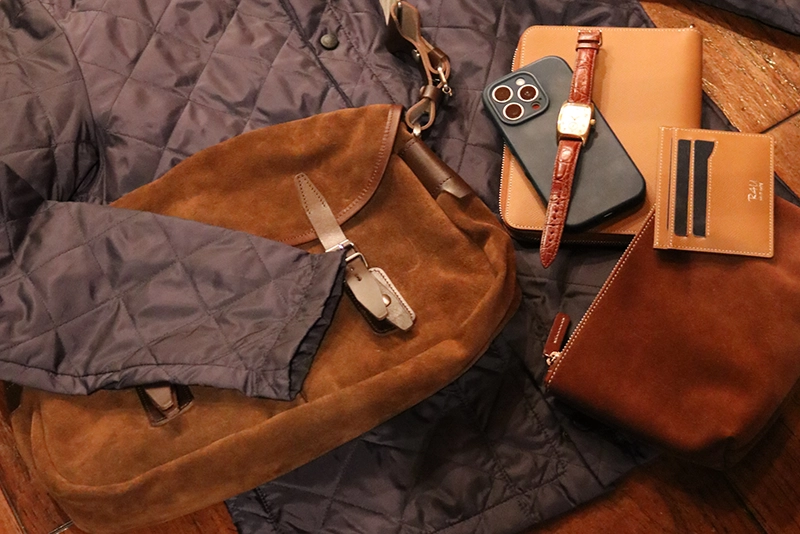適度な収納力があり、肩掛けも手持ちもできる実用性に加え、本革の質感が加わることでジャケットスタイルからTシャツ姿まで、一瞬で「大人の装い」へと引き上げてくれます。