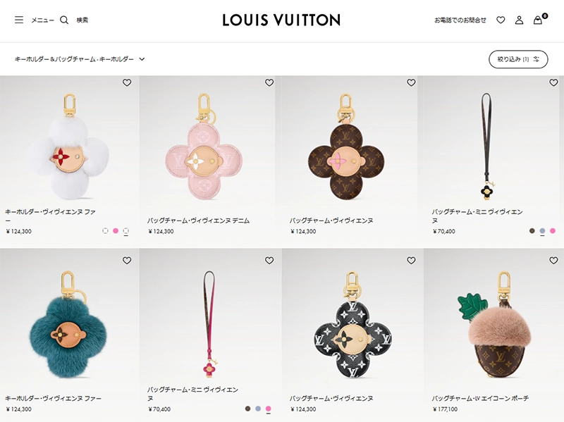 イニシャルモチーフやバッグ型チャームのキーホルダーなど、デザイン性の高いアイテムも展開。