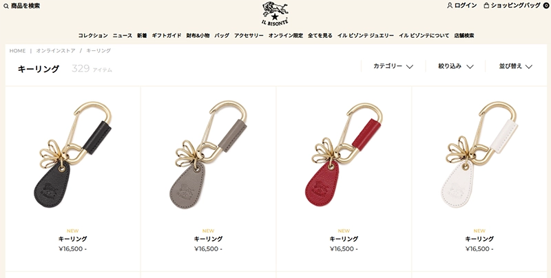 サフィアーノレザーを使用したキーホルダー(キーチェーン)が代表的で、傷が目立ちにくく、上品な印象を保ちやすいのが特徴です。